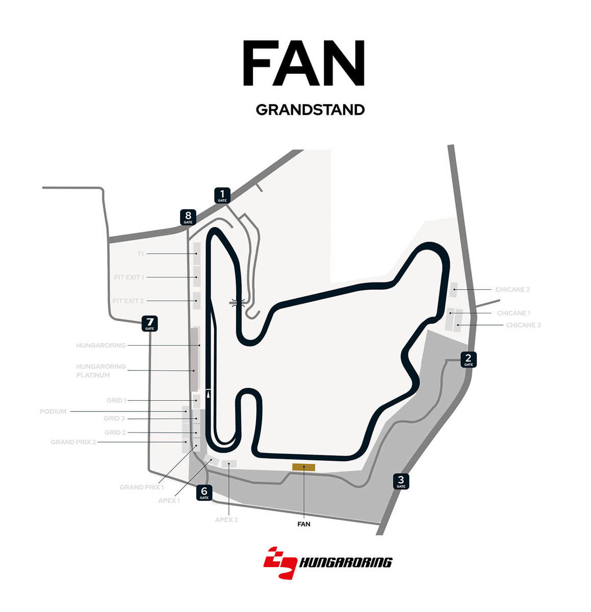 Catering units can be found near the grandstand to ensure the supply of food and drink. The Merchandising area – the exhibition area of Hungarorning – are also near, where many point of interests and shops are located.