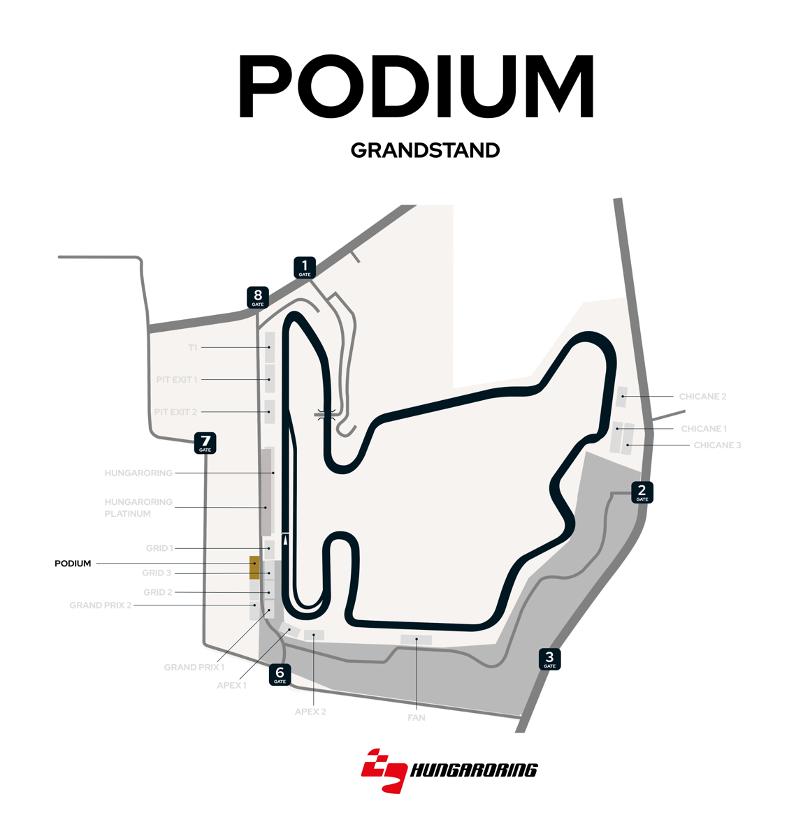 Catering units can be found near the grandstand to ensure the supply of food and drink. The Fanzone – the exhibition area of Hungarorning – are also near, where many point of interests and shops are located.